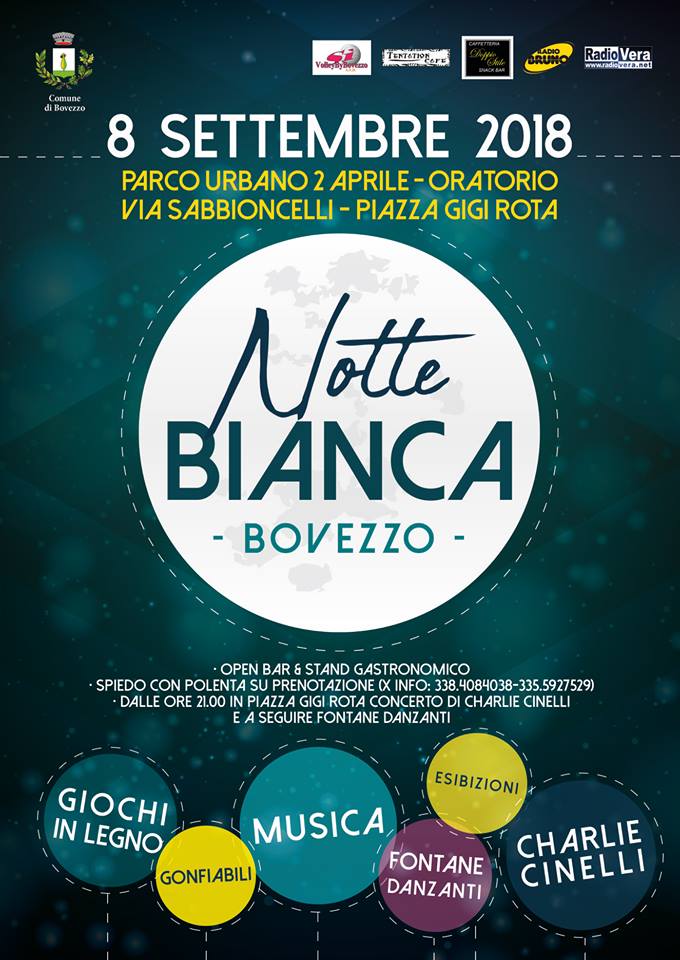 Si svolgerà Sabato 8 settembre la Notte Bianca per le vie di Bovezzo.