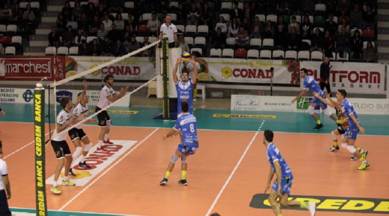 Nel terzo set si segnalano gli ace di capitan Tiberti e quello di Milan che portano i Tucani avanti 6-9. Entrano Silva e Quarta, ma Bisi è in serata di grazia (19 punti personali e 2 muri) e Tiberti riesce a servire i suoi spesso senza muro. Reggio è in vantaggio per la prima volta nel set sul 15-14 (errore in attacco) e da lì si gioca palla su palla: Cisolla conquista il match ball e mette giù la palla che vale i tre punti e la vetta.