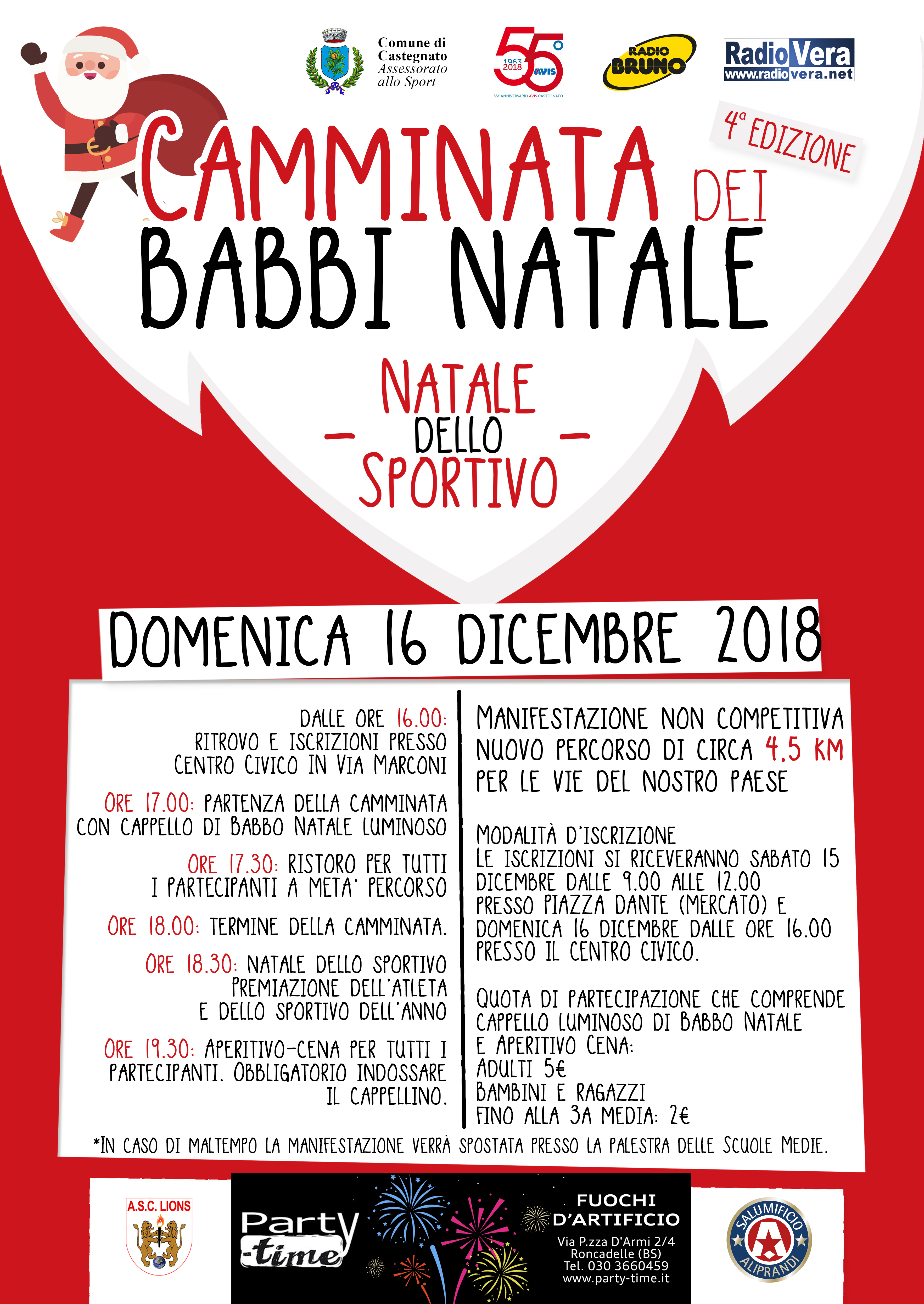 Domenica 16 Dicembre partecipa alla Camminata dei Babbi Natale di Castegnato!