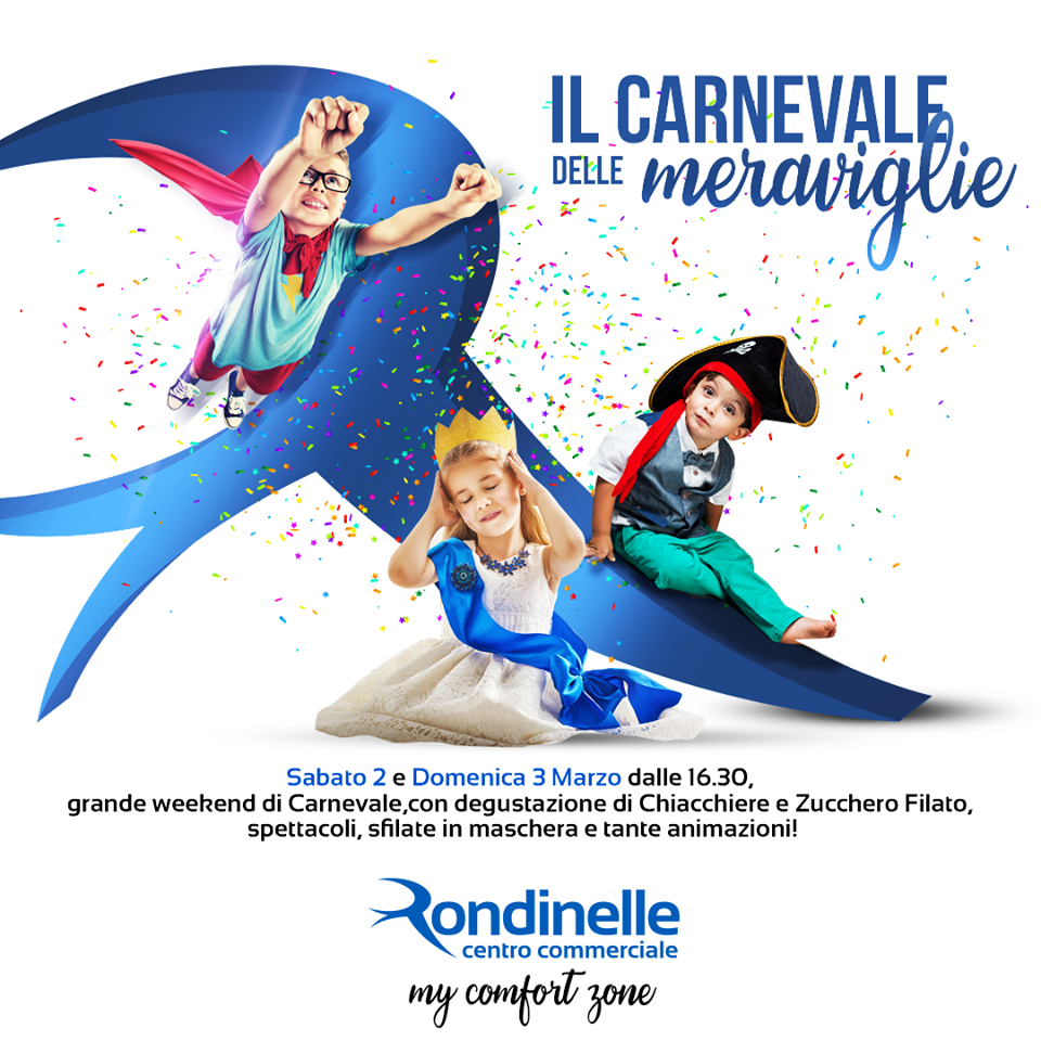 Sabato 2 e domenica 3 Marzo dalle ore 16.30, grande weekend di Carnevale al Centro Commerciale Le Rondinelle di Roncadelle.