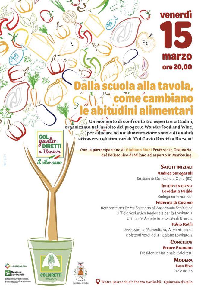 Un momento di confronto tra esperti e cittadini, organizzato nell’ambito del progetto Wonderfood and Wine, per educare ad un’alimentazione sana e di qualità attraverso gli itinerari di “Col Gusto Diretti a Brescia”.