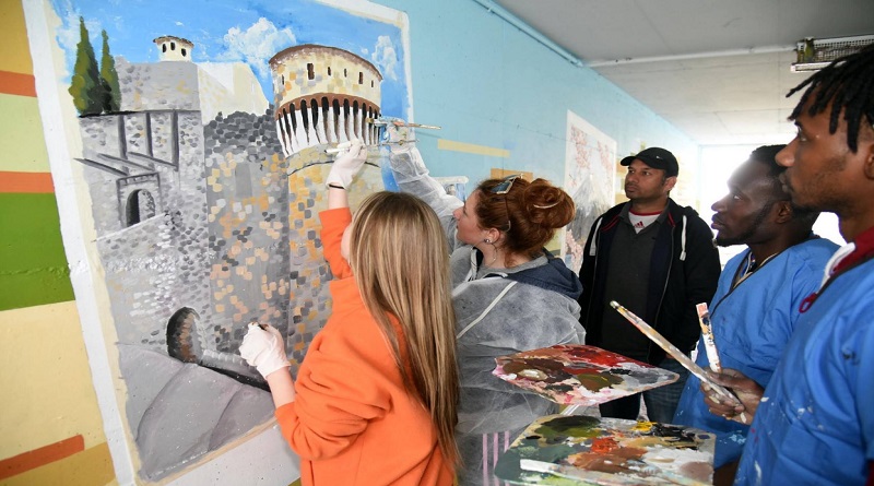 Iniziata lunedì 11 marzo si è conclusa la riqualificazione del sottopassaggio di Sant’Eufemia, progetto a cui hanno partecipato una ventina di studenti del liceo artistico Maffeo Olivieri, 10 ragazzi a settimana in alternanza scuola-lavoro, e una decina di ospiti dei due atelier d’arte dell’Asilo Notturno Pampuri.