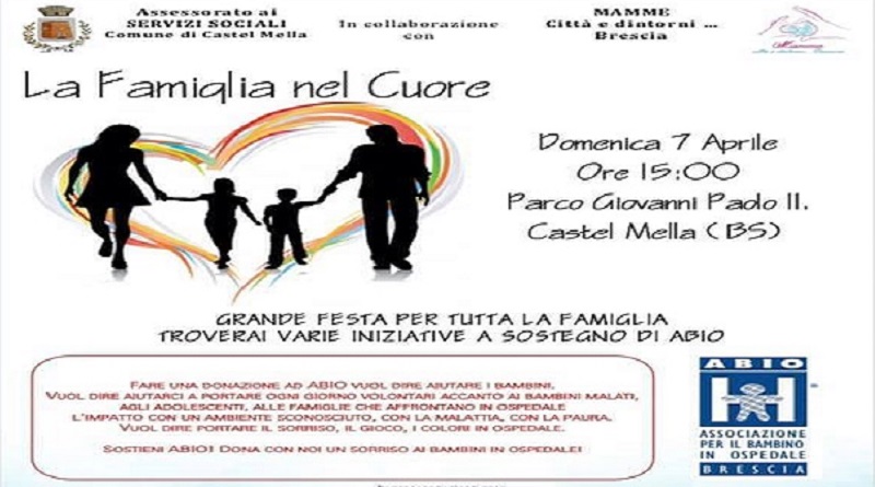 Domenica 7 aprile alle ore 15. 00, presso il parco Giovanni Paolo II di Castel Mella si terrà una grande festa per tutti i bambini e le famiglie : ci saranno animazione, trucca bimbi, gonfiabili, mago, pony e buon cibo… Un insieme di musica e colori durante la quale ognuno con un’offerta libera avrà la possibilità di acquistare colombe, uova di Pasqua, libri e il ricavato della giornata sarà interamente devoluto all’associazione Abio Brescia Onlus che opera nei reparti pediatrici della Poliambulanza.