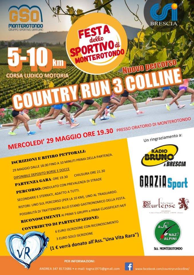 Mercoledì 29 Maggio alle 19.30 presso l’Oratorio di Monterotondo ci sarà la Country Run 3 Colline, corsa ludico motoria di 5 o 10 km con percorso adatto a tutti.