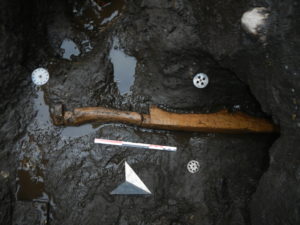 Piroga e giogo preistorici dagli scavi della Università Statale nel sito Unesco di Lavagnone