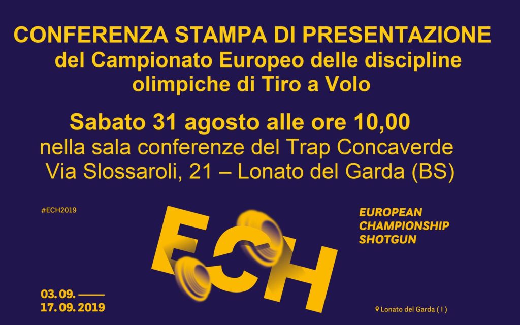 ?????? ?? ?????? alle ore 10, nella sala conferenze del Trap Concaverde in Via Slossaroli, 21 a Lonato del Garda (BS) si svolgerà la ?????????? ?????? ?? ????????????? del Campionato Europeo delle discipline olimpiche di Tiro a Volo, che si terrà a Lonato dal 3 al 17 settembre.