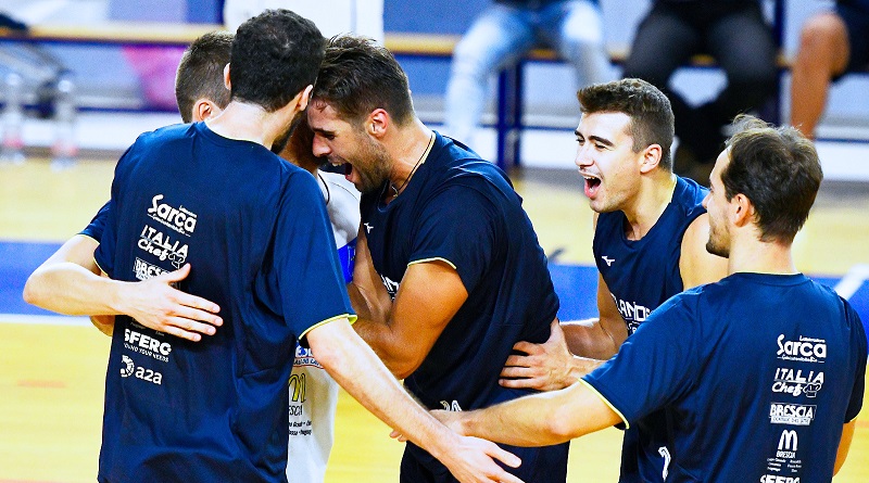 Il tecnico bresciano ha potuto far ruotare tutti i suoi giocatori ed è partito con Tiberti incrociato a Bisi, Cisolla e Ristic in banda, Festi e Mijatovic al centro con Zito libero.