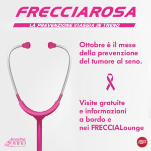 Dall’1 al 31 ottobre torna Frecciarosa, l’iniziativa promossa dal Gruppo FS Italiane e dall’Associazione IncontraDonna Onlus, con il patrocinio della Presidenza del Consiglio dei Ministri e del Ministero della Salute e la partecipazione di Farmindustria.