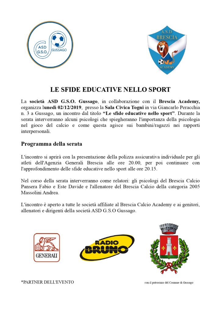 Eventi Le sfide educative nello sport 11 Ottobre 20192 Dicembre 2019 admin 0 Commenti asd gussago, sport