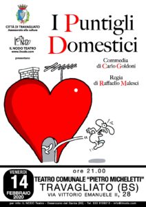 Venerdì 14 febbraio, alle ore 21.00, al Teatro Comunale Pietro Micheletti di Travagliato andrà in scena lo spettacolo «I Puntigli Domestici», una nuova produzione della compagnia «Il Nodo Teatro», con regia di Raffaello Malesci, al suo debutto!