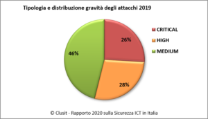 A livello qualitativo, i dati del Rapporto Clusit 2020 evidenziano che le categorie “Infrastrutture Critiche” e “Settore Pubblico”, con il settore bancario e finanziario e il settore “altri”, hanno subìto nel 2019 il maggior numero di attacchi di impatto “critico”, mentre le categorie con il maggior numero di attacchi con impatti di livello “Alto” sono la sanità, i fornitori di Software e Hardware e ancora il Settore Pubblico.