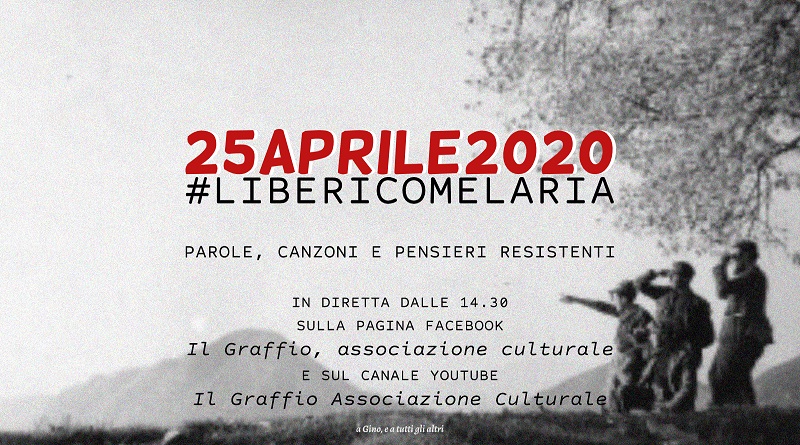 Sabato 25 aprile dalle ore 14:30 sulla pagina Facebook Il Graffio, associazione culturale e sul canale YouTube Il Graffio Associazione Culturale potrete seguire la diretta, che vedrà alternarsi sul palco “virtuale” molti ospiti, tra cui Lucio Pedroni, Carla Ferrari Aggradi, Francesca Parmigiani, Paola Ballerini, Itala Cabrini, Don Fabio Corazzina, Federico Gervasoni, Manuel Renga, Antonio Bontempi, Fabrizio Galvagni, Manuel Renga, Corrado Pelizzari… (ma la lista è in continuo aggiornamento).