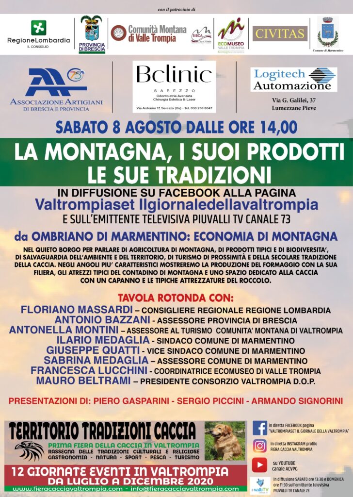 Nell’ambito della Prima Fiera della Caccia in  Valletrompia sabato 8 agosto, dalle ore 14, si terrà l’evento “La Montagna, i suoi prodotti le sue tradizioni” che si terrà ad Ombriano di Marmentino.