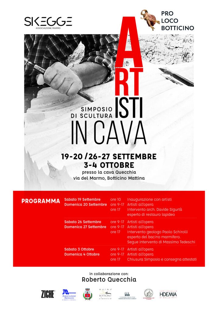 All’evento sei giovani artisti – scelti tra gli studenti delle accademie coinvolte e dagli studenti del corso serale di scultura tenuto dagli scultori Confortini e Moretti dell’Associazione Skegge – si cimenteranno in cava per altre quattro giornate, completando le opere in marmo che ora hanno abbozzato.