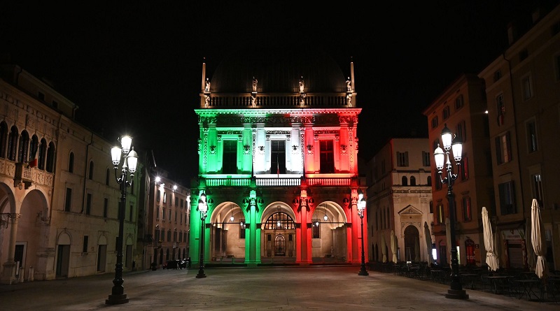 Palazzo Loggia illuminato per l’anniversario dell’Unità d’Italia