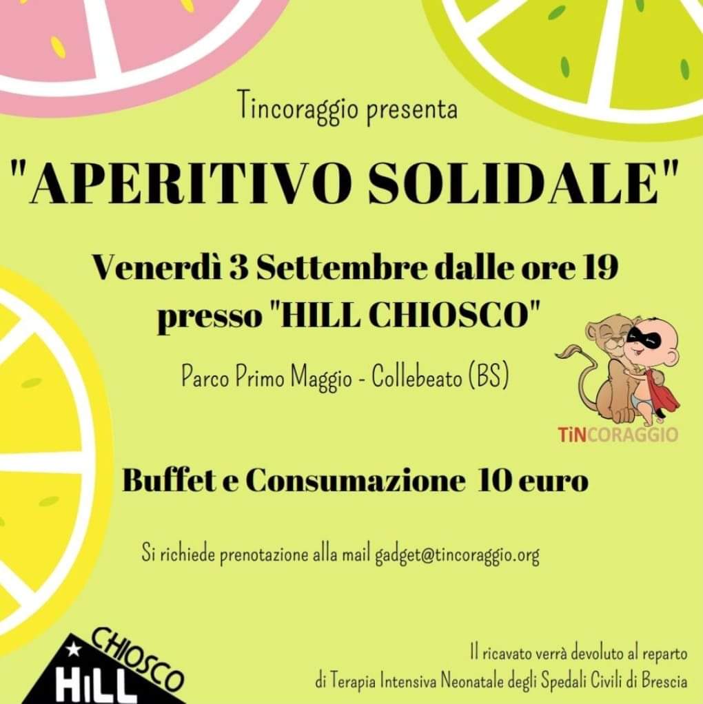 Arriva la nuova edizione dell’aperitivo solidale per sostenere i progetti TinCoraggio sempre presso HILL Chiosco del parco 1 Maggio Collebeato”! ❤