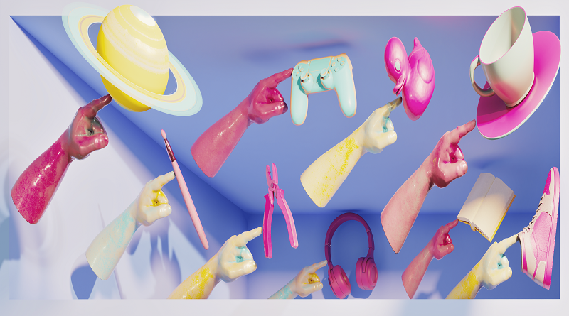 “Moving the World Forward” (“Spostare il Mondo in Avanti”) è un’immagine in grafica 3D che presenta delle mani che sono intente a spostare in avanti una serie di oggetti: un libro, una tazzina, un gadget elettronico, una scarpa, una pinza e un pianeta. Questo perché le mani, spesso gesticolanti, sono di frequente protagoniste delle narrazioni sul progresso, ma sono anche cariche di significati molteplici: dalla tradizione iconografica della buona ventura all’industria di massa, basti pensare al cursore a forma di indice che usiamo tutti i giorni sui nostri computer. L’opera presentata a MO.CA gioca con il concetto di progresso: qui il dito non propone una soluzione univoca e precisa ad un problema, ma tutto può essere accelerato, tutto può essere spostato in avanti e avvicinato alla sua utopica destinazione.