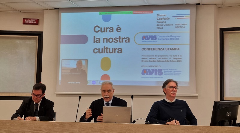 «Cura è la nostra Cultura» è il titolo scelto per il progetto promosso da Avis Comunale di Bergamo e di Brescia, insieme alle consorelle Provinciali, Avis Nazionale e Regionale Lombardia, in vista di Bergamo Brescia Capitale Italiana della Cultura 2023. L’iniziativa vuole rappresentare un significativo momento di testimonianza per quanto riguarda l’impegno avisino delle due province, in base allo statuto associativo che indica la strada per “… promuovere la donazione di sangue – intero o di una sua frazione – volontaria, periodica, associata, gratuita, anonima e consapevole, intesa come valore umanitario universale ed espressione di solidarietà e di civismo, che configura il donatore quale promotore di un primario servizio socio-sanitario ed operatore della salute, anche al fine di diffondere nella comunità locale i valori della solidarietà, della partecipazione sociale e civile e della tutela del diritto alla salute”.