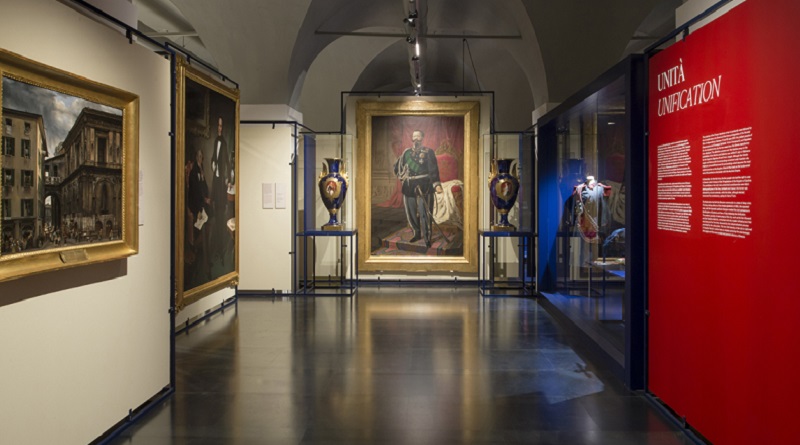 • La Terza guerra d’Indipendenza vide Brescia passare da ospedale diffuso a sentinella per il controllo dei confini con l’Impero. Dopo la vittoria franco-sarda sugli austriaci, infatti, Brescia fu annessa al Regno di Sardegna e divenne il punto più orientale del regno. Nella quinta sezione del percorso, Unità, campeggia il ritratto che Cesare Campini fece al re Vittorio Emanuele II, giunto a Brescia nel giugno del 1859 con Garibaldi e Napoleone III. Al suo fianco, ci sono i vasi della manifattura di Sèvres, donati da Napoleone III alla città di Brescia in cambio di una copia della Vittoria Alata. Al contempo, la sezione dà conto delle difficili condizioni sociali che Brescia visse nel pieno Ottocento: la veduta di Faustino Pernici, che immortala lo spazio liminale tra la Loggia e i vicini quartieri miseri e sovraffollati, mostra una parte inedita del grande palazzo municipale e della “città dolente”.
