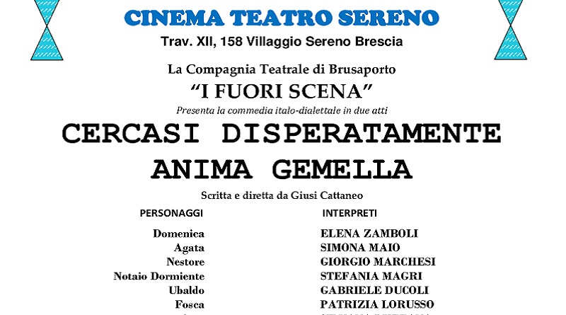 Commedia dialettale  Compagnia Teatrale di Brusaporto (Bergamo) _CERCASI DISPERATAMENTE ANIMA GEMELLA_ Interi 6€, Soci-Coop Over-65 Spi-Cgil 5€ Videoamici 4€ Ridotti 4€