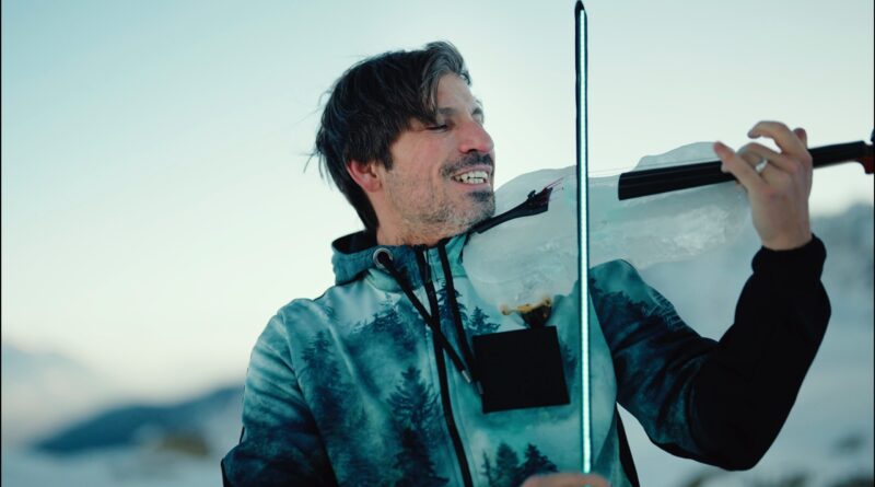 Il musicista bresciano Andrea Casta con il violino di ghiaccio lancia Ice Vibes
