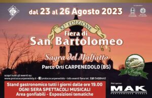 News Dal 23 al 26 agosto torna la fiera di San Bartolomeo 2 Agosto 20238 Gennaio 2024 admin 0 Commenti