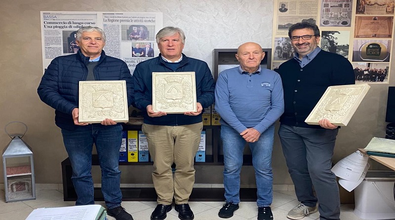 L’inatteso ritrovamento ha fatto venire un’idea all’imprenditore ghedese, che si è procurato il materiale necessario per ricomporre e realizzare uno stampo dello stemma originale del Comune di Ghedi. Un lavoro che, grazie ad una buona dose di sapiente artigianalità ed all’utilizzo della gomma elastomerica di tipo siliconico, ha creato tre stampe in gesso che Franco Ascolti ha deciso di consegnare agli attuali rappresentanti del Comune di Ghedi, il sindaco Federico Casali, il vicesindaco Giovanni Cazzavacca e Attilio Del Campo, il consigliere comunale che segue il settore del commercio. “Rivolgiamo il nostro plauso e il nostro ringraziamento a Franco Ascolti – è stato il commento dei tre amministratori al termine della consegna delle tre stampe – Ha offerto al Comune di Ghedi tre oggetti sicuramente preziosi, che raccontano la storia della nostra comunità. È stata una bella emozione poter ricevere questi stampi, che adesso verranno collocati in una sede opportuna, sia all’ex Rinaldini, come avveniva in passato, che nel nuovo polo scolastico, dove potranno trovare un’adeguata continuità rispetto alla collocazione originaria dei primi del ‘900. Proprio come succedeva all’inizio del secolo scorso, le nuove generazioni di Ghedi, in particolare, potranno vedere lo stemma della loro città”.
