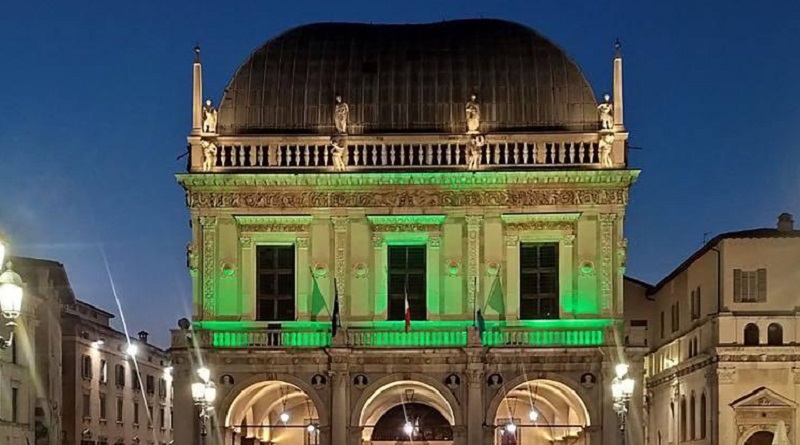 Palazzo Loggia illuminato di verde per “Illumina la speranza, colora il silenzio”