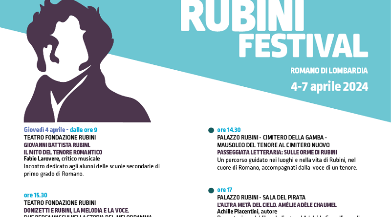 L’edizione 2024 del Rubini Festival si terrà a Romano di Lombardia da giovedì 4 a domenica 7 aprile ed è promossa dal Comune di Romano di Lombardia e dalla Fondazione OO. PP. Riunite G.B. Rubini con la direzione artistica di Cieli Vibranti